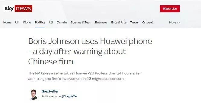 環球網記者梳理發現,報道此事時,英媒關注的點并非約翰遜簡單地用了華為手機,而是——約翰遜剛剛暗示要禁止華為參與5G建設后“用了華為”。